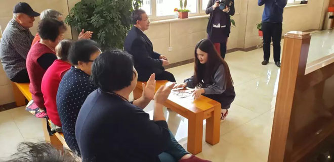 礼轻情意重,虽然纸张轻薄,却承载了我们满满的敬意当然也有同学,向老人献上了各自准备已久的舞蹈、歌唱等节目,为老人带来欢声笑语。