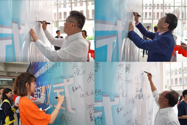 出席嘉宾、读者合影留念后,纷纷在海报上签名,为后续各项子活动的开展加油鼓劲!