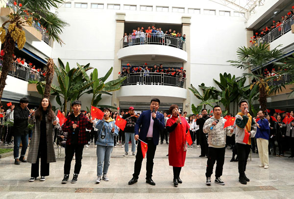 一颗颗红心,表达的是对祖国的热爱;一句句歌唱,吐露的是师生们的真情。“快闪活动非常精彩,特别振奋人心,能生活在这样一个伟大的新时代,真的很幸福,祝福我们的祖国越来越强大!”围观的信息工程学院学生李玉刚告诉记者。