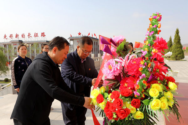 党委书记郭书印、党委副书记王亮与51名党员代表向红军长征将台堡会师纪念碑敬献花篮,向革命先烈三鞠躬,并瞻仰了纪念碑。在红军长征会师纪念碑前,党委委员刘雄飞同志领誓,在场全体党员面向党旗,庄严肃立,重温了入党誓词。活动结束后,参加主题党日活动的党员代表参观了红军长征会师纪念园。在三军会师纪念馆,大家透过一张张珍贵的历史照片和一件件印满岁月痕迹的历史文物,聆听红军动人事迹,感悟红军长征胜利会师的伟大壮举,感受革命先烈为争取自由和解放舍生忘死的崇高情怀,抚今追昔,感慨万千。