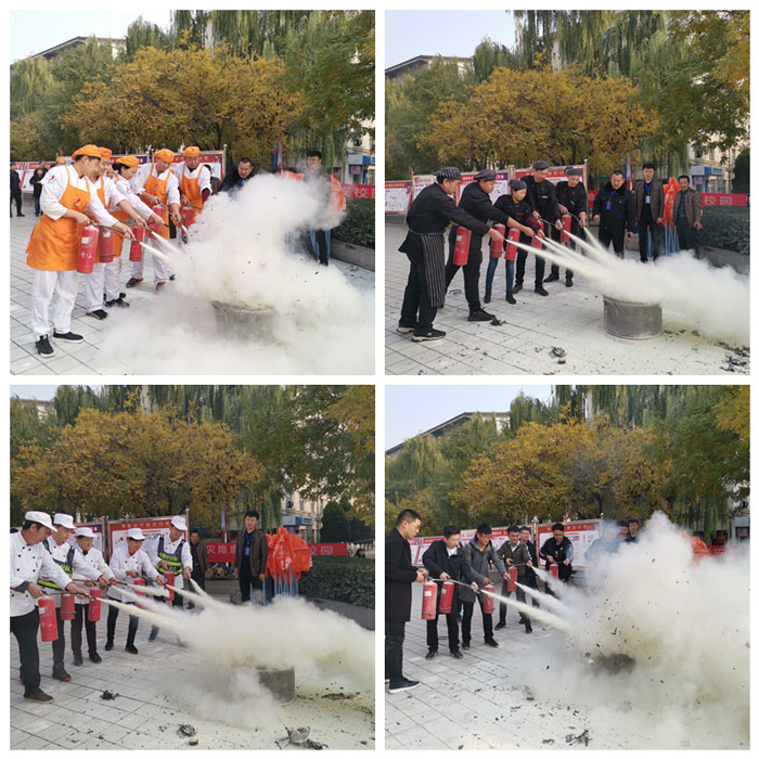 今年“119消防日”宣传活动以多种形式展开,各有关部门通过电子显示屏、网站提前做好宣传工作,布置了消防知识宣传展板、条幅,展示了消防器材,并展出了学生公寓违规使用的危险物品和违规电器。活动现场由保卫处工作人员、公寓服务中心工作人员、饮食服务中心工作人员、物业服务中心工作人员及我校机械学院研究生党支部学生党员向师生发放各类消防知识宣传材料、宣传册,解答师生关于消防安全方面的问题,宣传如何预防火灾以及在火灾发生时如何有效自救、逃生,如何扑救初期火灾等技能。随后,保卫处在迎西校区智林广场组织饮食服务中心、公寓服务中心及物业服务中心等员工200余人进行了消防灭火演练,取得了良好的效果。