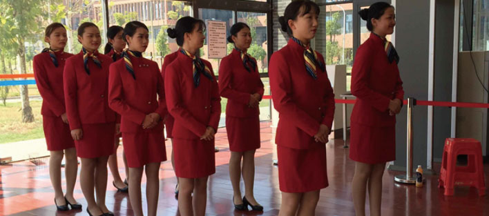 航空服务职业教育项目结合用人单位的需求设计课程及教学内容、教学标准,第一课堂与第二课堂并行,“软素质”和“硬素质”并重。课程分为通识类和文化基础类、职业形象类、语言表达类、实训类等版块。