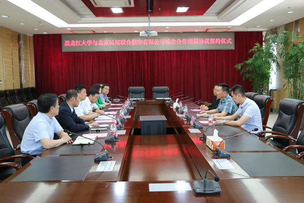 马少红副总经理代表北京民用联合航空有限公司向黑龙江大学表示感谢。他强调,为了适应新时代下培养航空复合型人才需求,公司与同全国12家高校合作开展民航类订单人才培养项目,此次与黑龙江大学采取“产学结合、校企合作”模式合作,既能发挥出学校和企业的各自优势,资源互用、利益共享,又能共同培养社会与市场需要的紧缺人才,提升企业自有人才的学历层次,满足员工优质、充分、持续的教育需求。他表示,北京民用联合航空有限公司将严把人才培养质量,同黑龙江大学一起携手真抓实干,开拓创新,合作共赢。