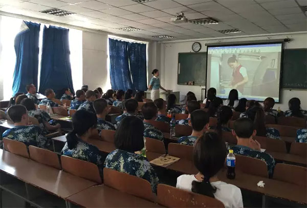 终于,穿上了帅气的制服,自己对着镜子欣赏了好久,原来是辣么的帅气靓丽。那天,第一次经历了礼仪训练,原来空乘真的不是花瓶,原来我们要经历这么辛苦的训练,在炎炎的烈日之下,我们只想说:加菲猫老师,我们都晒黑了,看起来那么和蔼的你,怎么会像一个魔鬼一样的折磨我们啊~~~~