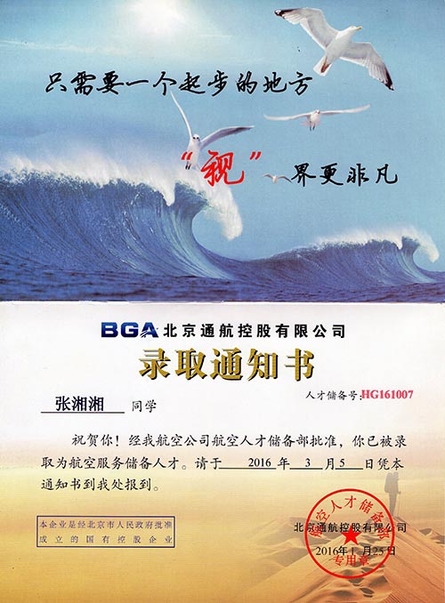 恭喜张湘湘同学被我校录取【东海学院航空】