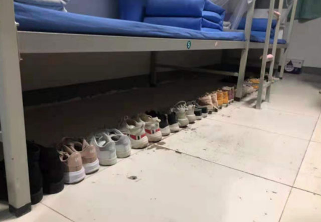 鞋子:鞋子统一鞋尖朝里、鞋跟朝外按照皮鞋、球鞋(休闲鞋)、拖鞋的顺序摆放整齐;